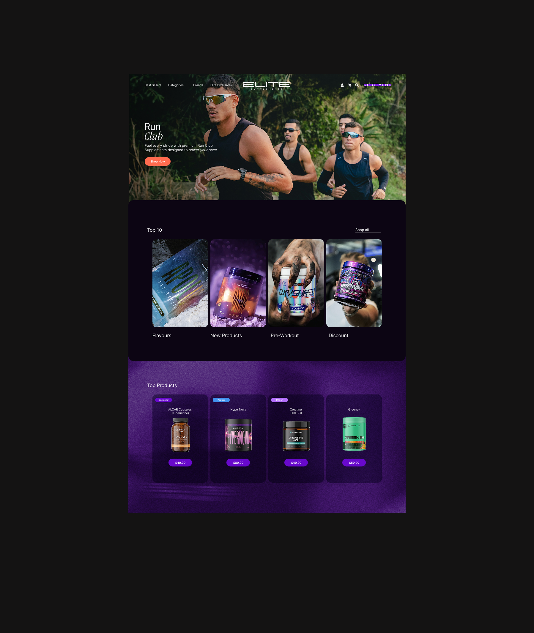 The rebrand for Elite Supplements was approached as a considered evolution rather than a complete transformation. With strong existing brand recognition in market, the objective was to modernise the identity while honouring the current wordmark and maintaining familiarity for its loyal community.